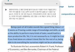 A built-in translation tool lets students highlight any text and translate it into over 40 languages. They can also listen to the translated text read aloud in their chosen language.